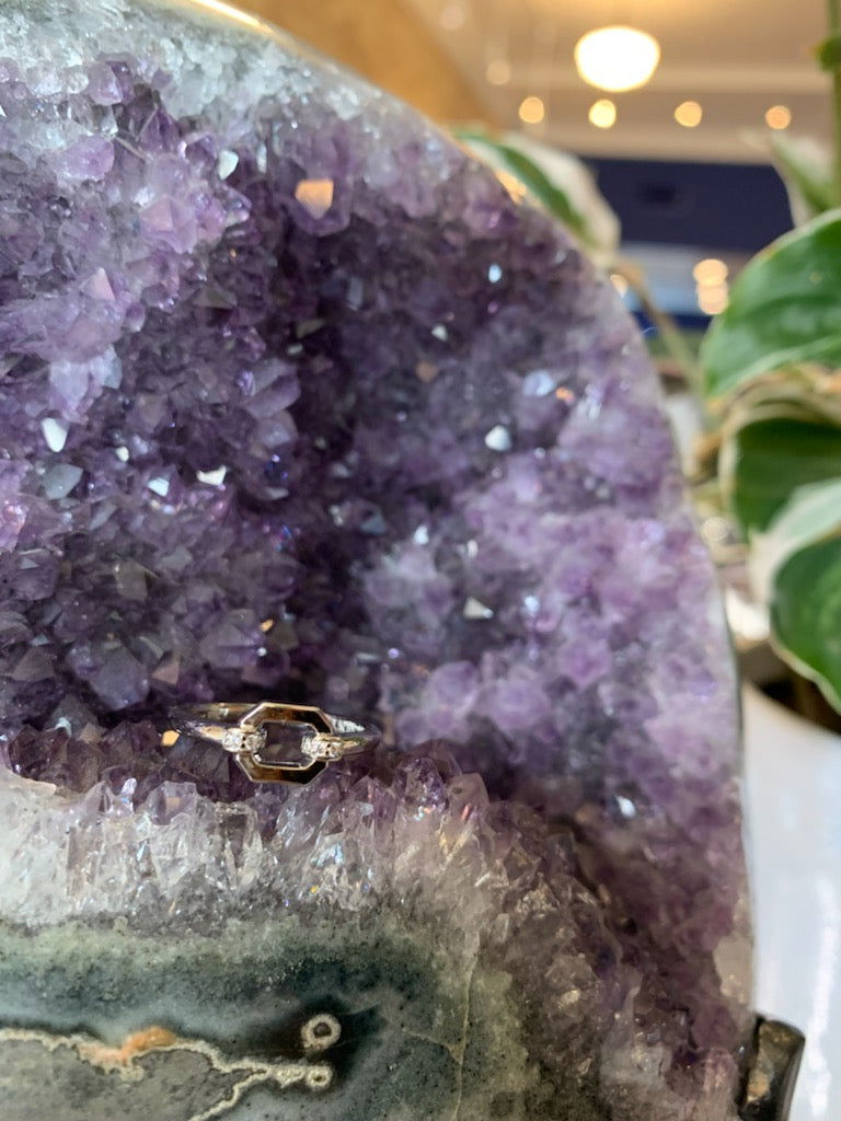 Indulge in the opulence of our Cz Link ring. Crafted from rhodium plated sterling silver, its luxurious shine complements the intricate link design. Elevate your style with this sophisticated and exclusive piece, perfect for any occasion.